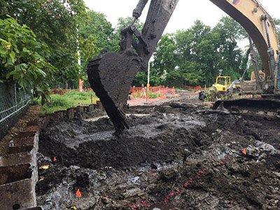 Posillico Environmental, Inc (Posillico), National Grid’s Remediation Contractor continued the full-scale ISS implementation. The ISS swell material and excavated soils were transported off-site to the approved disposal facility. Soil erosion and sediment control measures were inspected and maintained. Five Community Air Monitoring Program (CAMP) stations were operated 24 hours a day to monitor for the presence of volatile organic compounds (VOCs) and particulates at the Site’s property line.